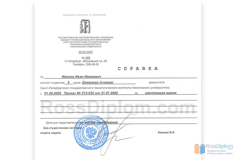 Всем известно, что справку об обучении можно оформить в вузе, школе или техникуме, обратившись к ответственному специалисту. Такая справка необходима по месту требования, например, при оформлении заграничного паспорта или визы, в военкомат, на работу Вам или Вашим родителям и т.п. Но что делать, если получить документ нет возможности, поскольку Вы еще или уже не являетесь студентом, а справка нужна? Есть выход! Купить справку об обучении в вузе, колледже или школе. Мы предлагаем Вам данную услугу, и делаем это качественно, быстро и по привлекательной цене.