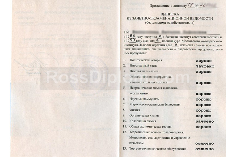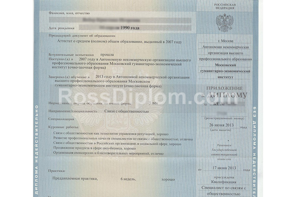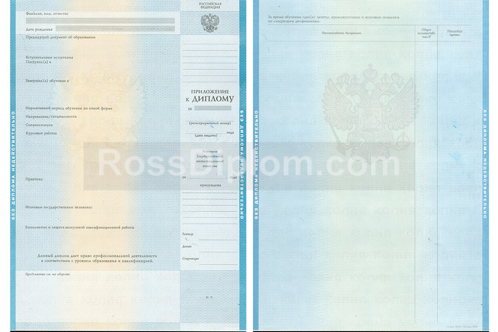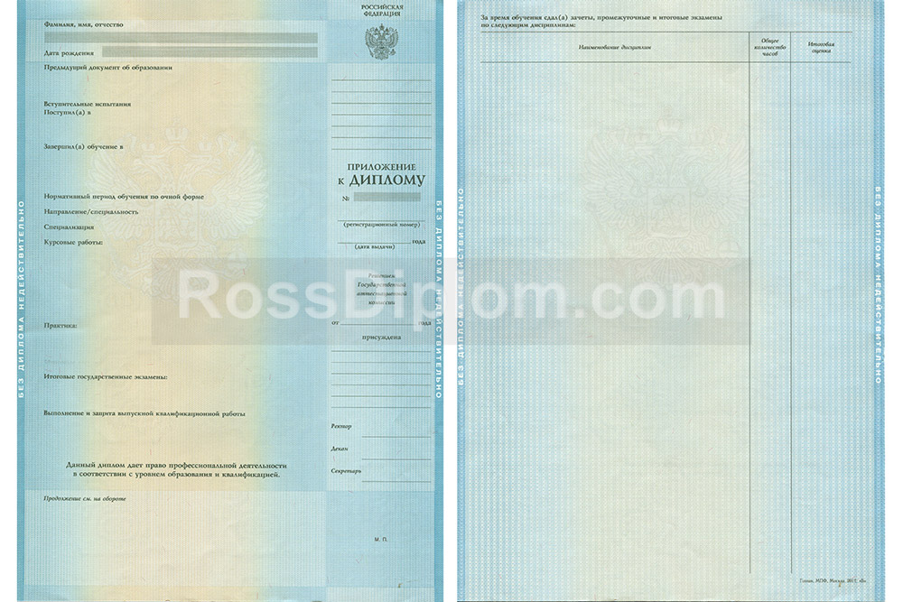 Купить приложение к диплому о высшем или среднем профессиональном образовании